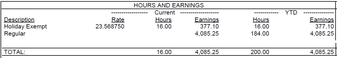 *Holiday hours are shown on monthly pay advice documents as information only. It will show the instances and value of those days. It is not Additional Pay. It is included in the monthly rate for monthly employees. (See image below for example.)
